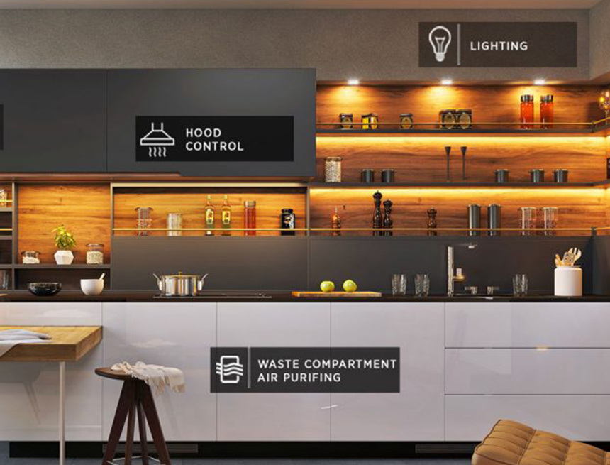 For example a person, who is cooking a cake, has dirty hands,  and is unable to access the waste compartment, to manage the functionality of the hood, or simply to turn on a light without getting dirty all these things: the gesture or voice control of some devices can significantly improve the functionality of this environment, helping to make some actions easier.